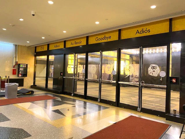 Disney wanted to use the multiple languages the show can be seen in to see hello and goodbye to the theatre goers in their own language. I am very proud to have worked on such an inclusive and rewarding design challenge.